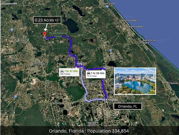 Quiet 0.23-acre wooded residential lot located in the Timberlane subdivision of Silver Springs, offering a private, natural setting just minutes from the Ocala National Forest. This property is zoned R-4, allowing Mobile Homes, Frame homes, or Concrete block construction, making it an excellent option for a primary residence, weekend retreat, or investment opportunity. No HOA and No deed restrictions provide flexibility to build and use the property to suit your needs. The lot is located in a No Flood Zone and is surrounded by Florida's natural beauty, with close proximity to hundreds of lakes, rivers, and natural springs. Enjoy boating, fishing, swimming, hiking, camping, horseback riding, and ATV trails. Popular nearby attractions include Juniper Springs, Silver Glen Springs, and Salt Springs, with Daytona Beach approximately one hour away. Affordable land in a growing area surrounded by nature. Qualified buyers may purchase this lot with as little as 20% down payment.