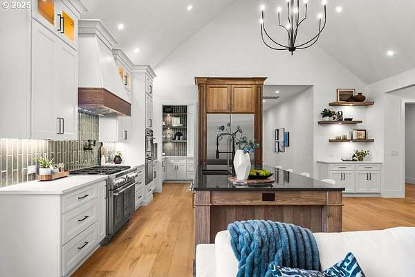 - Builtin Oven, Builtin Refrigerator, Butlers Pantry, Dishwasher, Disposal, Double Oven, Free Standing Range, Gas Appliances, Instant Hot Water, Island, Microwave, Pantry, Plumbed For Ice Maker, Pot Filler, Quartz, Range Hood, Solid Surface Countertop, Stainless Steel Appliance