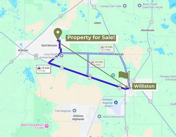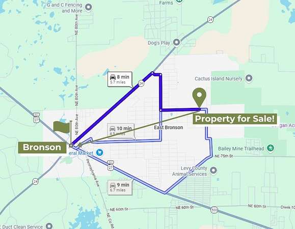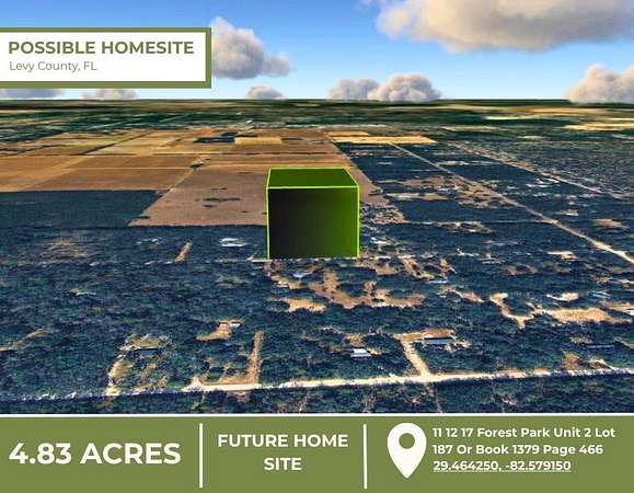 Build or Place your home on this almost 5 acre property and enjoy space, privacy, and endless possibilities. Located on NE 88th Ln in Bronson, Florida, Levy County, this vacant land opportunity offers a great setting for a primary residence, weekend retreat, or long term investment. The property features Paved road frontage and a rectangular layout with approximately 331 feet of frontage and over 640 feet in depth, providing ample room for a homesite, additional structures, and outdoor living. Electricity is available at the front of the property, adding convenience for future development. No HOA, No CDD, and Not located in a flood zone. Zoning allows for Mobile homes, Site built homes, and rural residential use. Bring your animals, including chickens and livestock, and take advantage of the usable acreage. The surrounding area offers a mix of homes and open land, creating a private setting while still being part of an established rural community. Conveniently located near US Highway 27, State Road 24, and US Highway 19, providing access to Gainesville, Ocala, and the Nature Coast. Qualified buyers may purchase with as little as a 20% down payment.