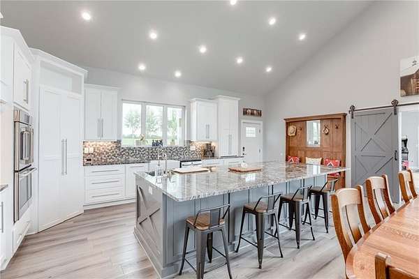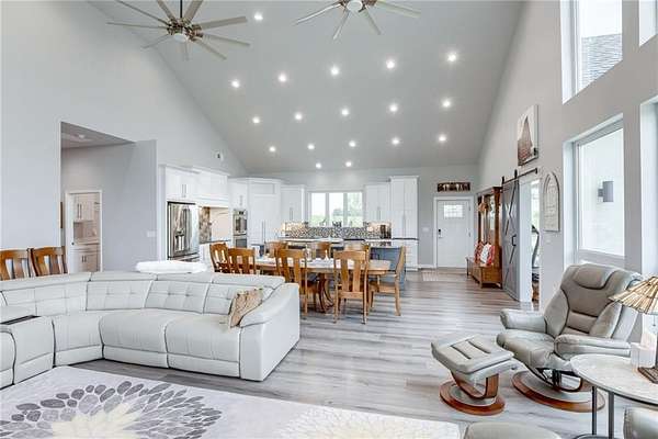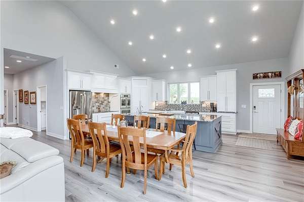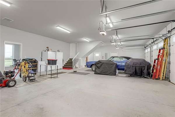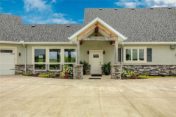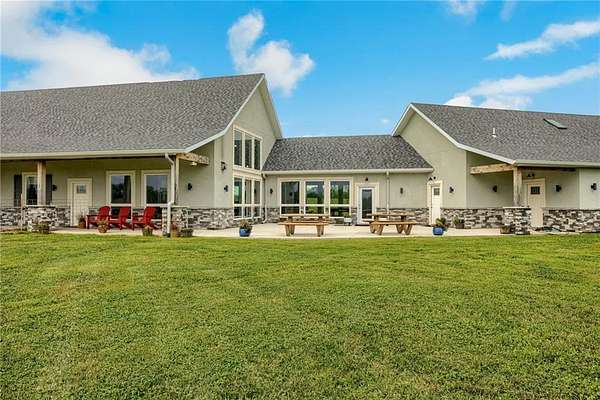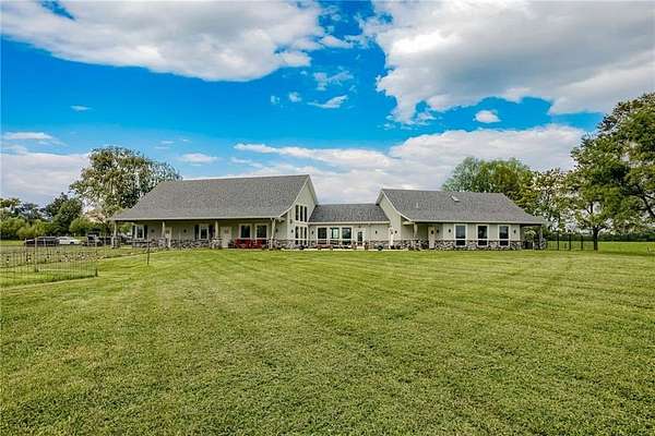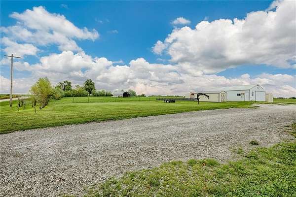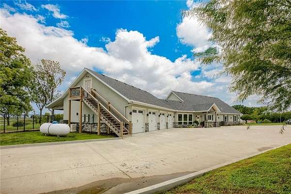 Discover the convenience of this picturesque estate located just off exit 40 in Lathrop MO. This newly constructed home offers over 4400 square feet of livable space and just over 5 acres with and livestock facilities. Ideal for business owners, large families, or those wanting a quick commute to Kansas City or the airport. The stunningly designed home offers 4 bed, four bathrooms, two fireplaces and a massive great room perfect for family living and entertaining guests. Inside there is a blend of marble and high end flooring that adds elegance and durability throughout. The heart of the home features a state of the art kitchen with an 11 foot custom granite island, walk in pantry, and personalized kitchen cabinetry. The expansive concrete driveway and parking pad outside the 4 car garage provides extra parking for additional guests. Additionally the main floor offers oversized hallways and doorways making it completely handicapped accessible. Outside the home there is a 30x40 barn with a fully fenced paddock with water spigots already suitable for livestock or horses. Additional highlights include a vault style safe room, a dedicated office space and an integrated Generac backup generator, ensuring your home remains comfortable and functional in any situation. This property seamlessly combines luxury security and practically practicality making it a true sanctuary. homeowner is also willing to sell adjoining acreage for an cost. Don't miss the opportunity to own this remarkable estate just 30 minutes from Kansas City and the MCI Airport. Schedule your showing today Inexperience all this stunning home has to offer!
