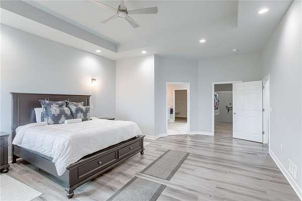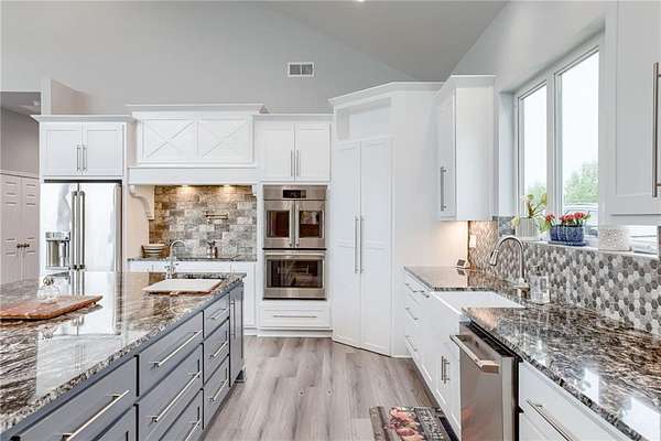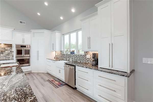 - Ceiling Fan(s), Custom Cabinets, Kitchen Island, Painted Cabinets, Pantry, Smart Thermostat, Vaulted Ceiling(s)