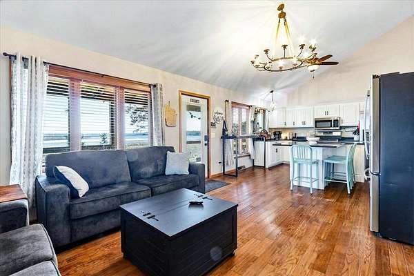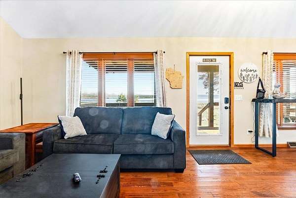 Enjoy true waterfront living on the Wisconsin River with direct access to Castle Rock Lake! Set on 4.91 private, wooded acres, this updated 5-bedroom, 2-bath home offers panoramic water views and a peaceful Northwoods feel. Relax on the 26ft x 7ft covered porch overlooking the river, or take advantage of your included boat slip right in front of the property. The shared pier is used by only two other homes, offering easy and uncrowded access to the water. Inside you'll find main floor laundry, a functional mudroom with versatile storage, and numerous recent updates including kitchen, baths, flooring, windows, A/C, electric, well, and more. The 30ft x 40ft pole building with concrete floors and a 10' overhead door is perfect for boats, UTVs, and year-round toys. Currently licensed for short-term rental with Cottage Keepers, transferable to the new owner for immediate income potential. Summer is almost here-buy now and enjoy the season on the water! Note: Some BR do not have closets