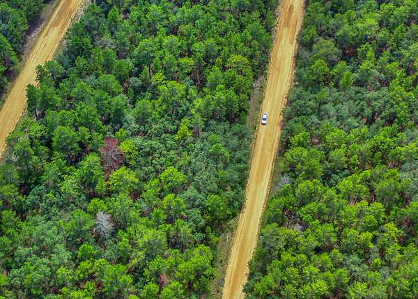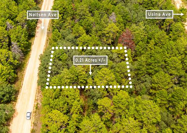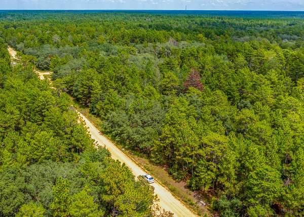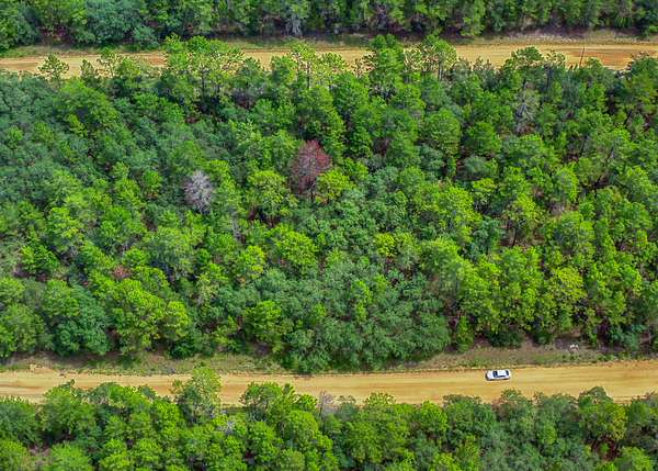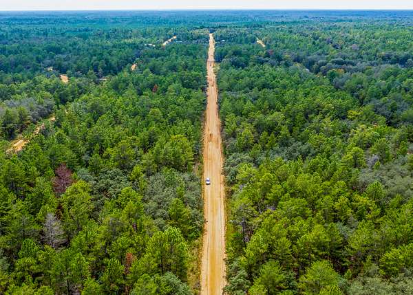 The lot is accessed by a dirt road, providing direct entry to the property.