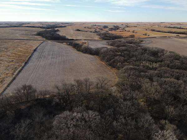 This exceptional 118+- acre property in Nuckolls County, Nebraska offers a rare blend of productive land, mature timber, water, and recreational opportunity. The farm includes approximately 24 acres of dryland cropland, 25 acres of pasture, and an impressive 62 acres of mature hardwood timber featuring oak trees and diverse native cover. Elk Creek winds through the property, providing a reliable water source and creating ideal habitat for wildlife.
