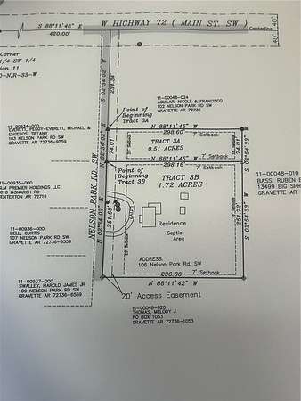 From The intersection of highway 59 and highway 72 in Gravette, Take Hwy 72 west to Nelson Park Drive. Turn left on Nelson Park Road and property will be on the left. Watch for signs