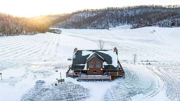 Located in the heart of Buffalo County Wisconsin, the stunning "Iron Buck Lodge" is officially for sale! Featuring 187 Acres that provides some of the best hunting the Midwest has to offer, this is an outdoorsman's dream property. Lodge features a vaulted chalet you have to see to appreciate, the perfect place to display your trophy room and have one of the best places in the county for entertaining family and guests. Featuring a welded Iron Buck, 2 floor to ceiling fireplaces, slate floors, and a game room overlooking the chalet, this is as prestigious of a lodge as you can find anywhere. Featuring 4 bedrooms, 3 bathrooms, in floor heat, and tuck under garage provide the perfect place for your family to create their hunting Legacy in world renowned Buffalo County. The 187 acres has one of the finest layouts of a turn-key hunting property that you can find. Featuring bluffs with over 375 feet of elevation change, excellent bedding areas, and a valley setting that is ideal for easy access. An elaborate trail system provides access to top bluffs along with destination food sources in the valley to hold deer year round. Numerous water holes along with proven stand locations and Redneck Blinds that offer excellent options for every wind direction. Located in a QDM neighborhood with large land owners that has consistently produced world class whitetails. This is a one-of-a kind Legacy property that will provide your family with one of the finest compounds in all of Buffalo County.