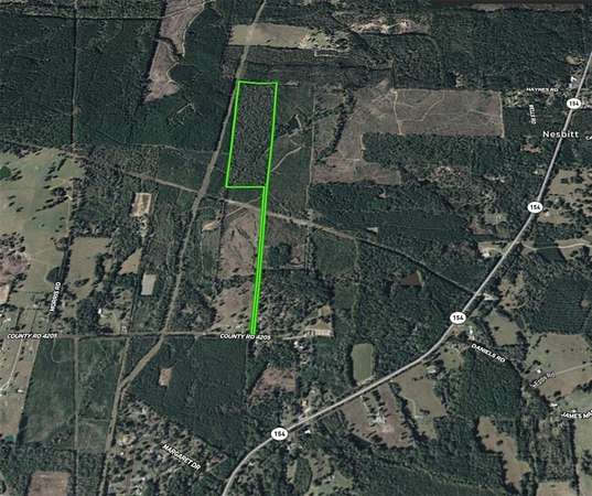 This 43.91-acre wooded property in Harrison County, Texas offers a prime opportunity for residential development, investment, or long-term land holding. Located along Nesbitt Cutoff, the parcel includes approximately 38.3 feet of paved road frontage. A deeded access strip runs approximately 2,852 feet from the road to the main portion of the property, offering a private entrance that leads deep into the interior acreage. There are no zoning restrictions in unincorporated areas of the county, allowing for a wide range of permitted uses. You can build a single-family home, modular residence, manufactured home, or even a tiny home without limitations. The land is heavily wooded with a mostly level profile, giving you options to clear selectively or maintain natural coverage. Electric service is available nearby, public water is at the property line, and a septic system will be needed for residential development. The location offers excellent connectivity. It's just 9 minutes from Marshall, 2 minutes from Nesbitt, 17 minutes from Hallsville, and under an hour from Shreveport, Louisiana. Nearby destinations like Piney Park and Light House Entertainment offer recreational options close by, adding to the property's appeal. Buyer is responsible for all closing costs, PERC testing, and installing all utilities (electric, water & septic). Don't miss the chance to make it yours! Contact us today for more details.