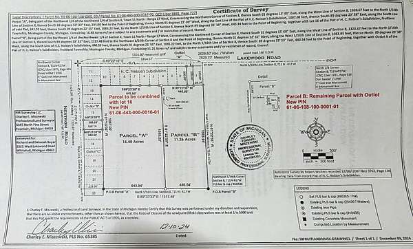 West on W Lakewood Rd to Nestrom Rd. South on Nestrom Rd to property. However, showings please use owner's home driveway at 5261 W. Lakewood road. There us cleared path from end of driveway at house to the parcel for sale. Survey stakes mark the beginning of Parcel A.