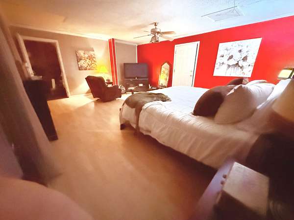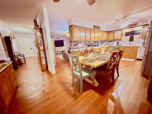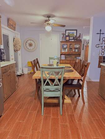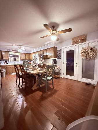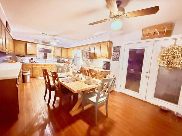 Welcome to your spacious 5-bedroom home situated on a peaceful 3-acre lot! One of the standout features is the 720 sq. ft. workshop with power and two tall roll-up doors -- Inside the home, the large open floor plan connects the living, dining, and kitchen areas seamlessly. The spacious kitchen features 36 cabinets for plenty of storage, stainless steel appliances, and a walk-in pantry. The home offers 3 bedrooms on the first story and 2 bedrooms upstairs -- each room has huge walk-in closets. The primary bedroom and walk-in closet are exceptionally large. In addition, relax and enjoy the outdoors on the large covered back patio. The 3-acre lot includes mature pear and peach trees, along with established raised garden beds. This could be the comfortable, practical home you've been looking