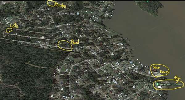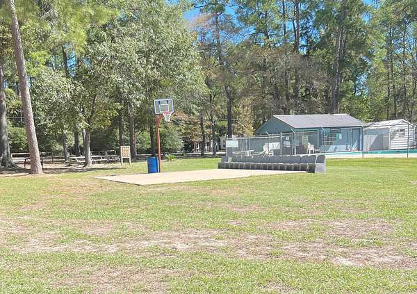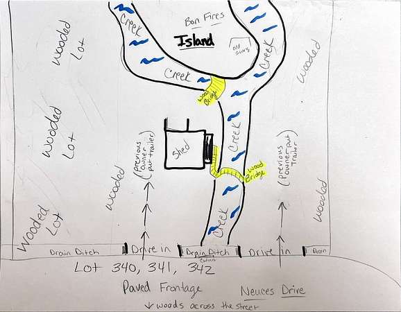 3 Beautiful shaded lots near lake. Multi family pulled travel trailers in on weekends and vacations on 2 of the lots. They shared the shed. Property has a creek running through 2 of the lots and around the back that creates an island. Families built bridges to access island. This is where they shared family campfires and crawfish boils. Please be cautious of bridges they have not been used in a long time and may need to be reinforced before use. Secured 24 hrs a day with worker at the gate. Pool, putt putt and basketball just a short bike ride down the road. Not far from the lots are the community club room, lighted pier, boat ramp and boat slips for residents to use. Will need a new survey. Call your agent for a scheduled visit today! ( Drawing is not to scale just a good idea of layout. Mobile homes and trailers are allowed with certain rules.