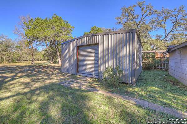 Discover a rare opportunity to own a charming home in one of the most prestigious neighborhoods in New Braunfels with exclusive Island privileges and direct access to the picturesque Comal River and for kayaking, picnics, volleyball matches, and grilling sessions, plus the option to reserve areas for family reunions. Nestled on an expansive 1.814-acre park-like lot adorned with majestic oak trees, this spacious 2,903 square foot home features three generous bedrooms and four bathrooms. Additionally, a versatile flex room can serve as guest quarters, a home office, or a playroom for children. For those with creative projects, a large metal workshop and a convenient storage shed provide plenty of room for all your needs. There is plenty of room to add an outside pool and entertaining oasis or to build another home or casita on the property for multi-generational living.