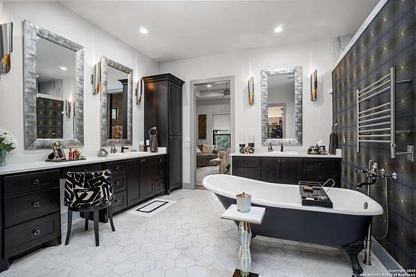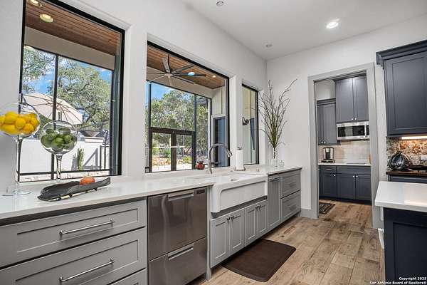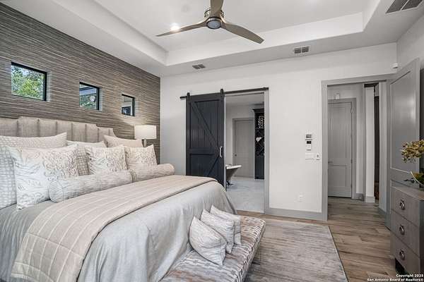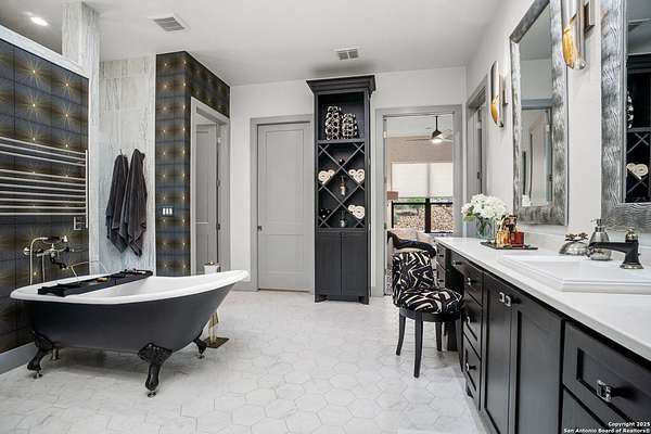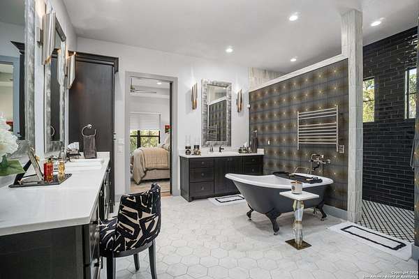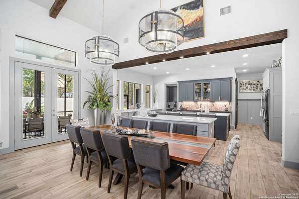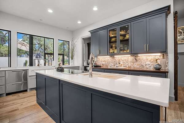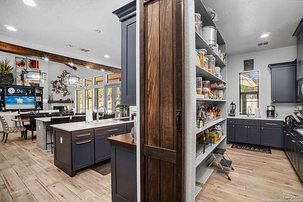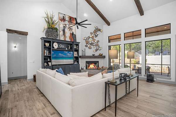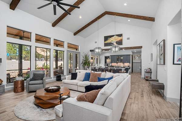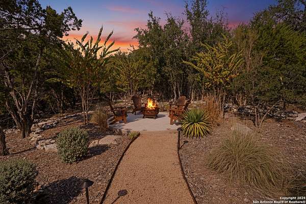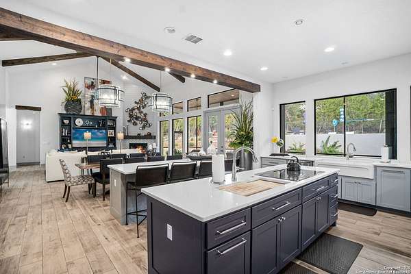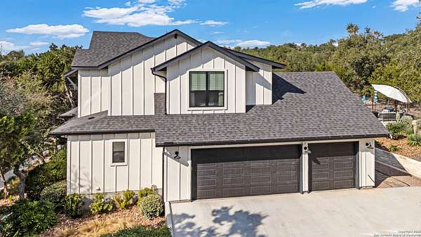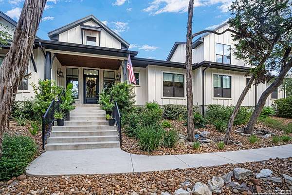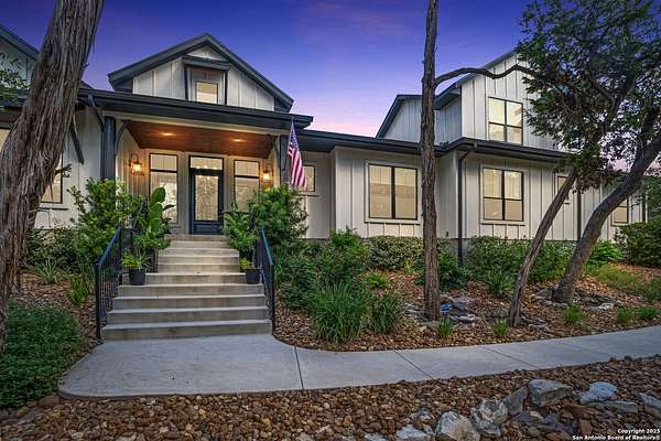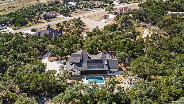 Every so often, a home captures the rare balance between sophistication, comfort, and the unmistakable charm of Hill Country living. 2016 Brunello is that home-a French-inspired masterpiece by T.A. French Custom Homes, completed in 2020 and privately set on 1.56 wooded acres in the prestigious Vintage Oaks at the Vineyard community. Offering approximately 3,679 square feet with 4 bedrooms and 3.5 baths, this residence blends timeless design with modern innovation. Since purchasing in 2023, the current owner has elevated every corner of the property with high-end upgrades, including a reimagined fireplace featuring new artisan tile, faux gas logs, and an electric starter; fresh designer wallpaper and updated entry tile; and a full suite of new designer light fixtures that create a consistent, elevated ambiance throughout. The heart of the home is the chef's kitchen, showcasing GE Cafe appliances, Benedettini cabinetry, quartz counters, a disappearing downdraft vent, and a catering-style pantry perfect for entertaining. The open living area flows effortlessly to a screened-in back patio-an expansive outdoor retreat with epoxy-coated flooring, ample space for dining or lounging, and tranquil views of the surrounding oaks. Beyond lies a newly added sparkling pool, custom fire pit, and professionally landscaped backyard framed by a substantial retaining wall and native greenery, offering both privacy and elegance. Inside, the spacious primary suite provides a serene escape with a spa-style bath featuring dual vanities, a soaking tub, and a large walk-through shower, while the additional bedrooms are generous in size and flexible in use. A serene reading room provides the perfect spot for reflection or creativity, and a walk-in attic offers abundant storage with easy access. The oversized, epoxied three-car garage is a dream for the enthusiast-complete with a garage sink, 220-volt plug, and a custom pull-down screen door over the smaller bay for year-round usability. Beyond beauty, this home is built for efficiency and peace of mind. Energy features include a 27-panel Tesla solar array with microinverters, a 14 kW Tesla backup battery, a dual high SEER heat pump with emergency heat, dual propane tankless water heaters, and full spray-foam insulation-all contributing to remarkable comfort and low utility costs. Vintage Oaks residents enjoy resort-style pools, a fitness center, clubhouse, tennis and sports courts, and miles of walking trails, making it the perfect combination of private living and community connection. Located within a highly rated school district and offering easy access to the best of New Braunfels-from shopping and dining to Canyon Lake and San Antonio-this home delivers the ideal Hill Country lifestyle. Elegant yet inviting, refined yet relaxed, 2016 Brunello is a turn-key sanctuary where craftsmanship meets convenience, every upgrade is intentional, and every day feels like a retreat.