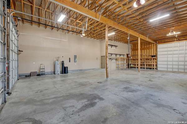 133 Quarry Point | The Pinnacle at New Braunfels Set on 1.7 scenic acres in the prestigious Pinnacle community, this exceptional custom home blends Hill Country elegance with unmatched functionality. The two-story, all-masonry residence features three bedrooms, two baths, and approximately 3000 square feet per CAD of thoughtfully designed living space, wrapped in timeless stucco and stone. What truly sets this property apart is its nearly 1980square-foot garage complex, purpose-built for serious enthusiasts, RV owners, and hobbyists alike. The 60' x 17' drive-through motorhome garage boasts 16-foot ceilings throughout and 14' x 14' doors, easily accommodating large RVs, boats, or specialty vehicles. In addition, a four-car tandem garage with 12' x 12' doors provides abundant space for multiple vehicles, while a 20' x 14' dedicated workshop offers room for projects, storage, or equipment.