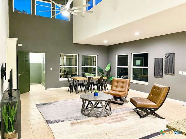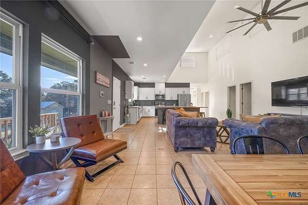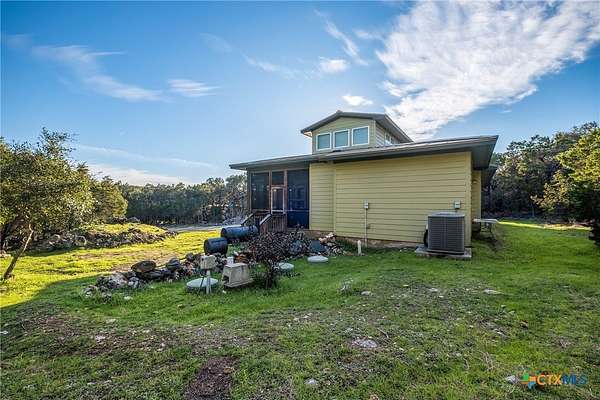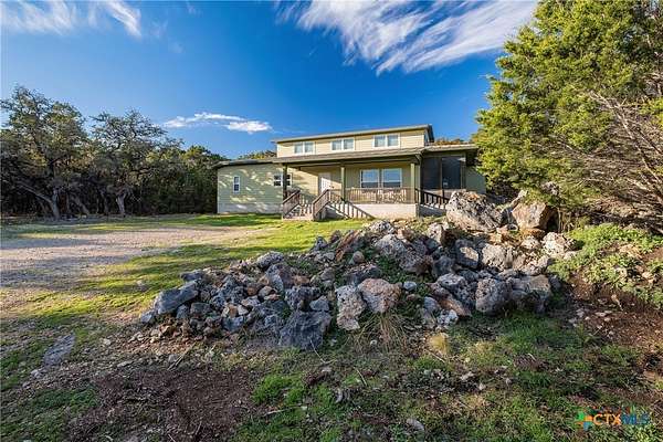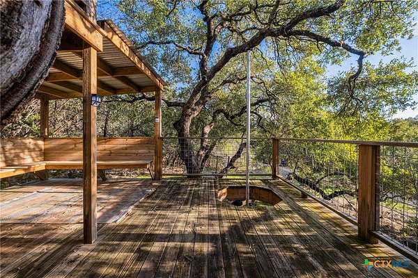 PROPERTY ALSO FOR SALE THE PERFECT "GO OUTSIDE & PLAY" HOUSE! CUTE COUNTRY CHARMER sits on 3.267 WOODED & FULLY FENCED/GATED LOT w/ a MULTI LEVEL TREE HOUSE & FIREMAN POLE! Relax inside the Screened-in Side Porch or on the Large Covered Front Porch while sipping on your favorite drink & enjoying the sights & sounds of nature! You'll LOVE the Bright & Spacious Open Floor Plan w/ Soaring Ceilings that connects the Great Room; which is the HEART OF THE HOME, to the Eat-in Kitchen & Breakfast Area! Enjoy Built-in Bookshelves to showcase your favorite books/games, easy care Tile & Laminate Flooring throughout, & a Treehouse w/ OVER 3 ACRES to run/play! This house is PERFECT for entertaining your family & friends both inside & outdoors! The MASSIVE Laundry Room can double as a 2nd Pantry/Flex or Game Room/Office w/ TONS OF SPACE FOR STORAGE & a separate entry! The Hill Country Ranch Style home features a Standing Seam Metal Roof, recent Stainless Appliances in 9/22, Large Walk-in Master/Primary Shower w/ a Rain Head, Handheld Sprayer, 2nd Shower Head & 4 Body Jets for the ULTIMATE SPA LIKE EXPERIENCE, Recent Interior Paint throughout, Laminate Floors in Bedrooms, New Lights, Fans & Toilets in 6/22, New Whole House Water Filtration System & at Sink in 9/24, HVAC Serviced & New HVAC Condenser in 6/25, New Well Pump in 6/25 & New Tank in 9/23! Property comes with a 700 FT. WELL & a 1500 GALLON WATER CISTERN! ONLY 10 MILES TO CANYON LAKE, WHITEWATER AMPHITHEATER, & HORSESHOE OF THE GUADALUPE, 12 MILES TO HISTORIC GRUENE/GRUENE HALL/WINERIES & 15 MILES TO SCHLITTERBAHN WATER PARK! Mileage is approximate. *Owner/Landlord is a licensed TX Realtor*