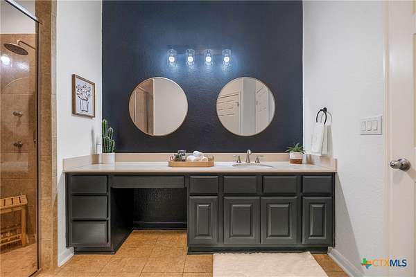 - All Bedrooms Down, Bookcases, Breakfast Bar, Ceiling Fans, Eat In Kitchen, Granite Counters, High Ceilings, Kitchen Island, Living Dining Room, Main Level Primary, Multiple Closets, Open Floorplan, Primary Downstairs, Pull Down Attic Stairs, Recessed Lighting, Separate Shower, Shower Only, Tub Shower, Vanity, Window Treatments