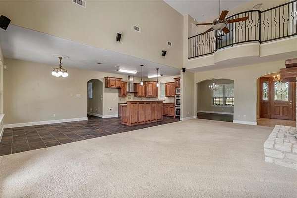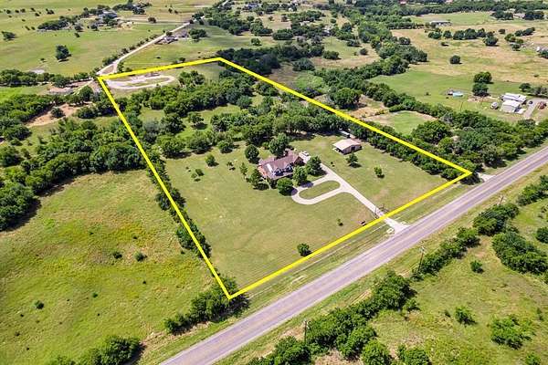 Welcome to your private slice of Texas paradise--this AG EXEMPT, 10.01-acre property blends timeless ranch charm with modern functionality, just 30 minutes from Fort Worth. Nestled behind a circle drive and surrounded by mature trees along with manicured landscaping, this well-maintained classic ranch-style home features a wrap-around covered porch that invites you to relax and enjoy the peaceful scenery. Inside, the home is filled with natural light and offers a warm, open layout. The kitchen stands out with granite countertops, a gas cooktop, and double ovens--perfect for hosting family and friends. Upstairs, a spacious game room offers flexibility and could easily serve as an additional bedroom or private retreat. The property is fully equipped for both leisure and productivity, featuring a 30x40 workshop with electricity, a barn, a tranquil pond, and a seasonal creek. A versatile bonus room has been added upstairs and offers plenty of space for additional interior storage, helping you stay organized year-round. With a great balance of open pasture and mature trees, it's ideal for some livestock, raising bees, recreation, or simply enjoying wide-open space. The home runs on its own water well with filtration system, and propane is also available on-site for added efficiency. Recent upgrades include a newer HVAC system and a roof that's only four years old. Two large storage containers also provide ample space for additional ranch equipment, tools, or seasonal items. Whether you're looking for a peaceful homestead, a weekend retreat, or a versatile property with room to grow--this one checks all the boxes.