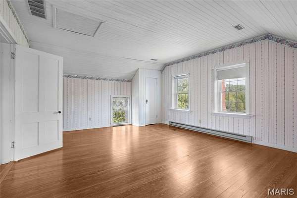 Dreaming of a manageable mini farm with room to breathe? This beautiful 2-story brick home, dating back to the 1880s, sits on 7.5 +/- acres and offers the perfect blend of historic charm, usable land, and modern comfort, just one hour west of St. Louis. Inside, the main level welcomes you with a side-entry foyer featuring ceramic tile, a spacious office or study with hardwood floors, a cozy great room centered around a wood-burning masonry fireplace, a formal dining room, and an inviting eat-in kitchen highlighted by exposed brick. A bright sunroom offers peaceful views of the surrounding grounds, perfect for morning coffee or evening relaxation. An elegant staircase crafted by the renowned Kirkwood Stair Company leads to three generously sized bedrooms upstairs, including a primary suite, all showcasing original hardwood floors and abundant natural light. There's potential to bring your imagination and design to the future "guest cottage" that would provide some flexibility as a possible short-term rental, in-law suite, or private retreat. Located just minutes from town and within a top-rated school district, this property delivers the best of country living on a practical scale. This is the perfect spot, ideal for hobby farming, animals, gardens, or simply enjoying wide-open space without the upkeep of a large farm. Multiple outbuildings provide excellent options for storage, livestock, workshops, or creative pursuits, making this property as functional as it is charming. With a little TLC, this home can truly shine, and the outbuildings present an opportunity for enhancement! Bring your ideas! Sale is subject to Franklin County Planning and Zoning and MO-DOT approval.