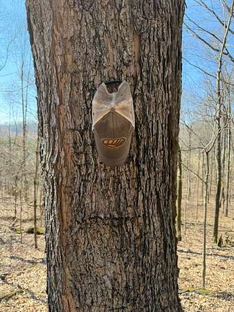 A developed internal trail network allows access across much of the property. These trails support recreational riding, hiking, equipment access, and hunting mobility. Several established food plots are positioned within the property, along with multiple hunting blinds that are already in place. Wildlife habitat is supported by the combination of timber cover, food sources, and terrain variation.