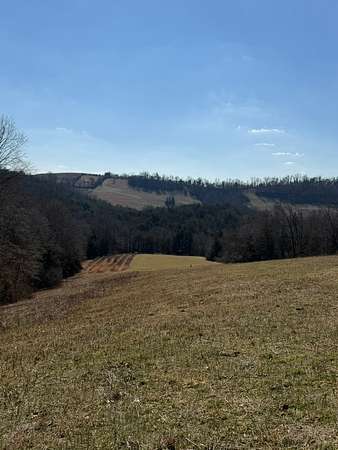 The topography includes rolling terrain with elevated areas that offer long-range views across portions of the surrounding countryside. Multiple areas appear suitable for potential home construction, depending on soil testing, site planning, and county approval.