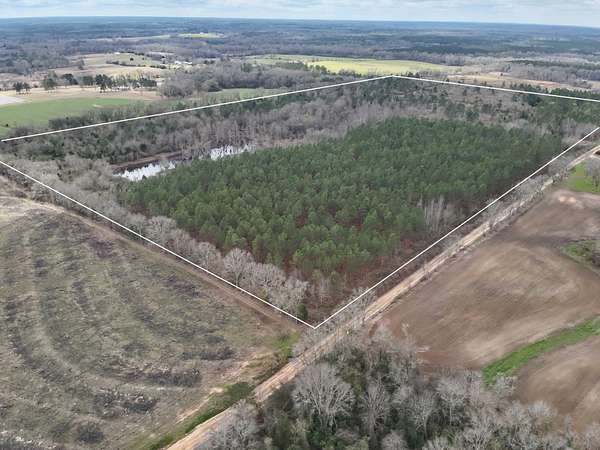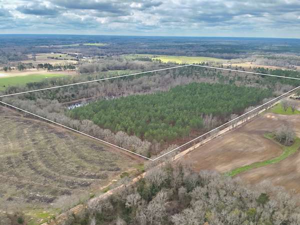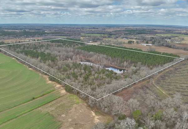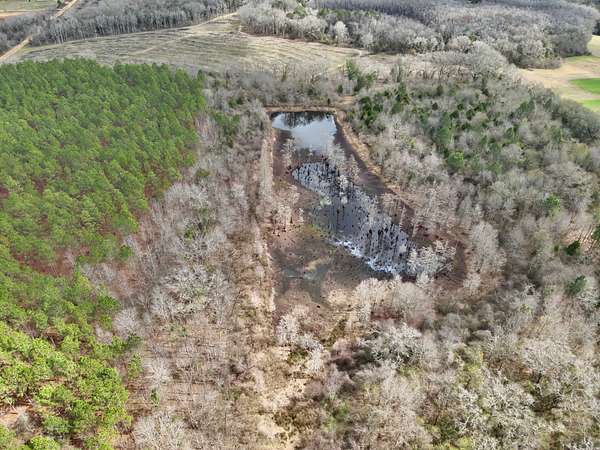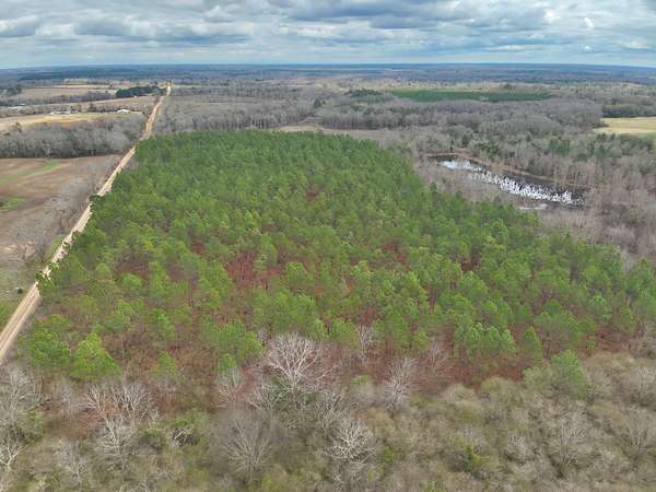 The land features approximately 18 acres of planted pines, providing future timber investment potential, while the remaining acreage is a beautiful mix of mature hardwoods and natural pine timber. A large pond serves as the centerpiece of the property, creating opportunities for fishing, wildlife habitat, and recreational enjoyment. The combination of timber, water, and road frontage makes this tract ideal for a private country estate, hunting and recreational land, timber investment, or future development.