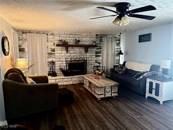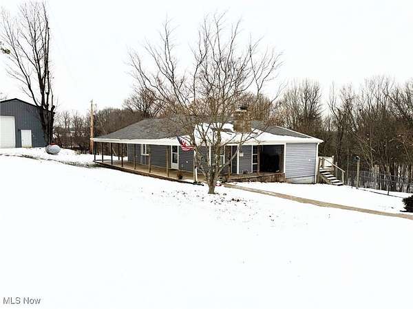 Country Setting Home featuring 3 bedrooms and 2 full baths. The home offers a large living room with a fireplace and a spacious eat-in kitchen, complete with appliances. Connected to city water. Situated on over 10 acres, the property includes a large pond and fenced land ideal for animals. Improvements include a 40' x 24' pole barn, an additional 25' x 25' pole barn, a 12' x 20' animal shelter, and a two-car detached garage-perfect for storage, livestock, or hobby farming.
