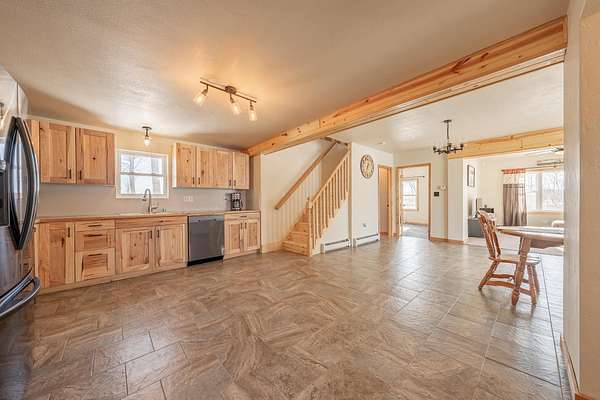 Great country property with 3 car garage on just over 2 acres! Come see this partially updated property which features the entire main level redone! On the main level you will find a brand new large updated kitchen with all new appliances and beautiful wood cabinets. The open concept main floor features a dining space, living room, updated full bath with laundry, bonus room off kitchen, and a nice sized primary bedroom. You will appreciate all the wood accents. Upstairs, find 3 large guest bedrooms that need some updating and TLC, but ready to make it all yours with your personal touches. There is a space all plumbed and is ready to add a second full bath. Outside enjoy the peaceful setting with fire pit and 3 car detached garage. Please allow 48 hrs. for offer acceptance.