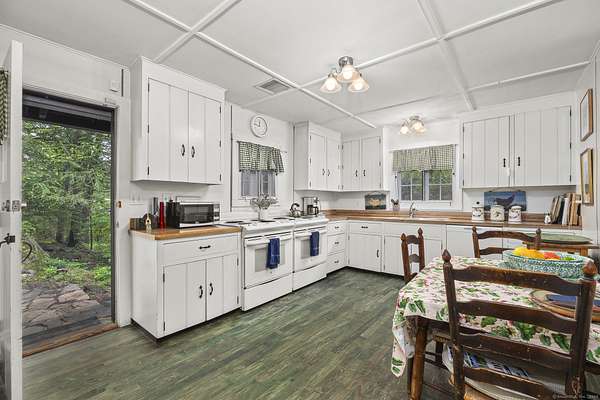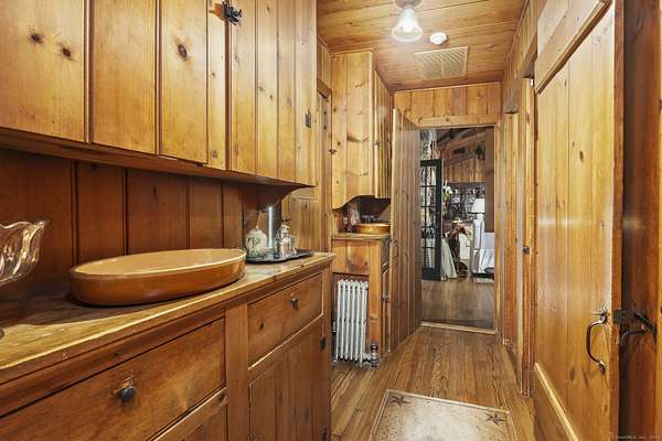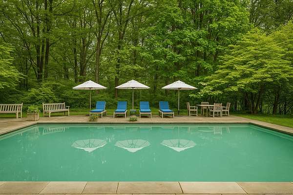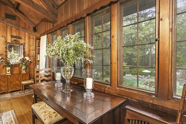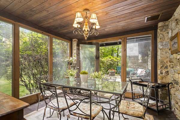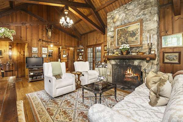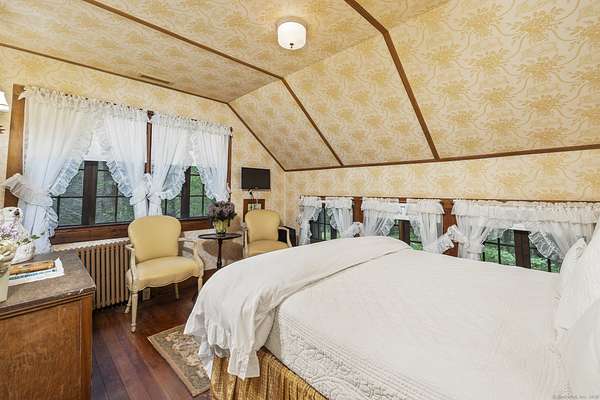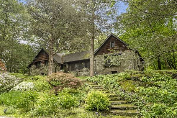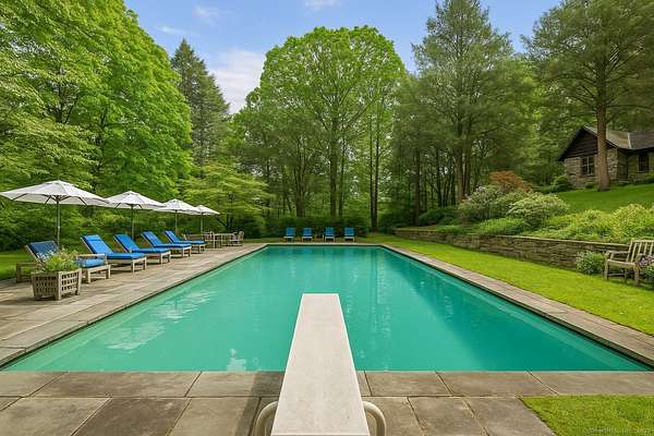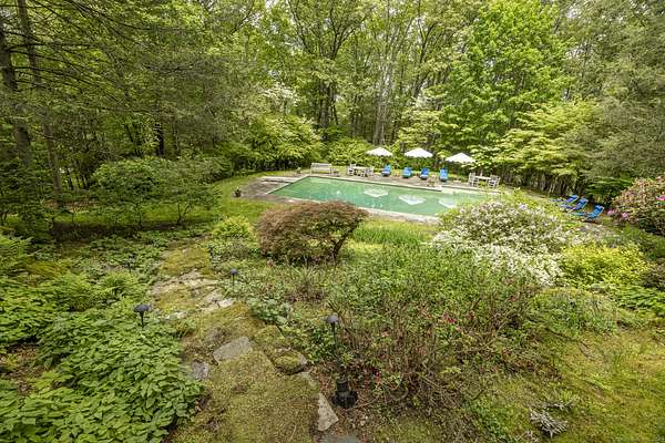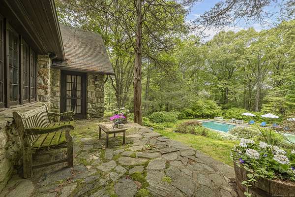 1930's Story Book Cottage exuding charm and period details, privately located down a long tree-lined driveway on 10 +/- lush acres with a fabulous heated, saltwater pool. Great Room with vaulted ceilings, original oak floors, floor-to-ceiling fieldstone fireplace and a paneled bar. Dining Room/Sunroom with floor-to-ceiling windows and doors out to the fieldstone terrace overlooking the gardens and pool. Eat-in Country Kitchen with handsome butler's pantry. Primary en suite bedroom, a study/bedroom and another en suite bedroom complete the main floor. A fourth bedroom is nestled on the second floor. Close proximity to Candlewood Heights Beach Club allows membership for a fee. A peaceful retreat yet minutes to downtown New Milford and 90 minutes to NYC. Showings by appointment only. Please do not drive up the driveway without an appointment.