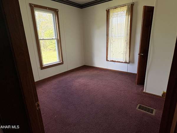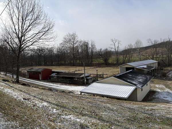 This well-kept farmhouse is beautifully situated on approximately 6 scenic acres with roughly 300 yards of frontage along Dunnings Creek and is located less than four miles from the highly sought-after Chestnut Ridge School District. Whether you are raising a family and want to be close to the schools, an outdoorsman searching for your own hunting and fishing retreat, dreaming of a small farmette lifestyle, or simply looking for the perfect weekend getaway this property deserves your attention. The main level offers a spacious kitchen, two bedrooms, and a full bathroom, along with a generous living room and charming front-facing parlor, ideal for comfortable everyday living. Throughout the home you'll find beautiful original moldings, window casings, doors, and built-ins that preserve its timeless character. Upstairs features two additional spacious bedrooms, a walk-in closet, and a bright hallway window that brings in natural light. The partially finished basement includes two separate walkout doors to the backyard, a large, enclosed room perfect for canning or a wine cellar, a classic Pittsburgh toilet, and ample shelving for storage. Outbuildings include a 32' x 24' detached two-car garage, an 82' x 18' pole barn ideal for hay, farm equipment, or camper storage, and a 14' x 36' masonry livestock shelter. Located in the backyard of everything the Chestnut Ridge School District has to offer and just about 20 minutes from the restaurants, shopping, and charm of historic downtown Bedford, including the renowned Omni Bedford Springs Resort & Spa, this property is well suited to a wide range of buyers and lifestyles. Schedule your private showing today and experience it in person.