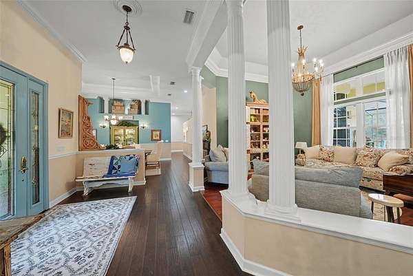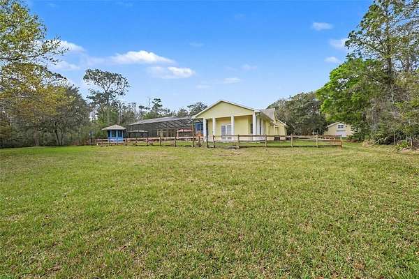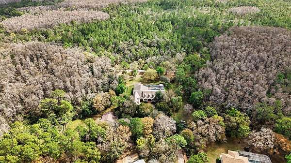 Welcome to this serene equestrian estate with a private gated entrance all while reaping the benefits of city amenities. This is a unique opportunity to own this 6,400 sqft home settled on 3.6 acres with direct access to 8,000+ acres of a wilderness park from your own backyard fence. The main house holds 4 bedrooms and 5 baths, mudroom with shower, billiards room, formal dining and sitting spaces, updated and open kitchen, breakfast room off master suite, bonus room with full bath and office. Updates include fully remodeled opened kitchen, pool remodel & equipment replacement (2020), 2 TRANE HVAC systems (2021), custom kitchen pantry & baking pantry, new bathroom vanities, new hardwood flooring, travertine pool deck (2020), built-ins with gas fireplaces in primary suite and living room, built-in banquet and more! The barn hosts 4 horse stalls, workshop, storage, wash station and 768 sqft of livable space upstairs. This unique property is minutes away from 589 expressway with a straight shot into downtown Tampa, 20 minutes to the nearest beach and less than 10 minutes to Trinity Medical Center. 5,632 sqft in the main home.