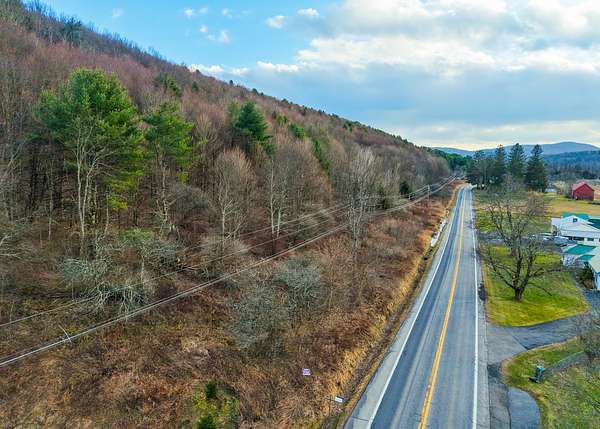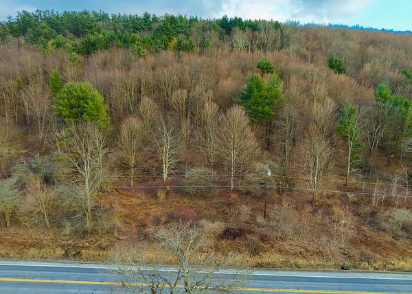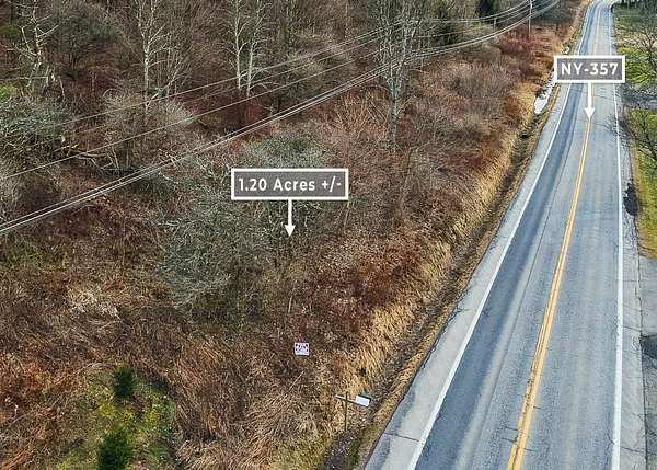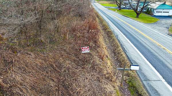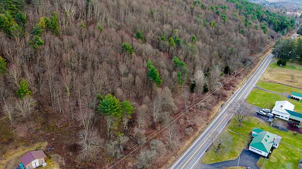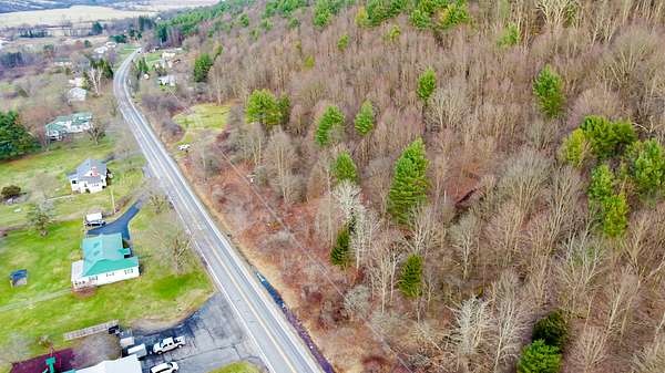 This property is located in a quiet rural area of Delaware County where parcels are spaced apart and the surrounding landscape is shaped by natural terrain and low-density residential use.
