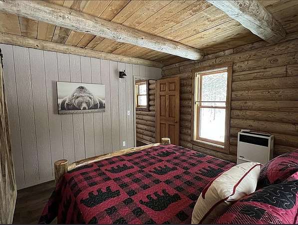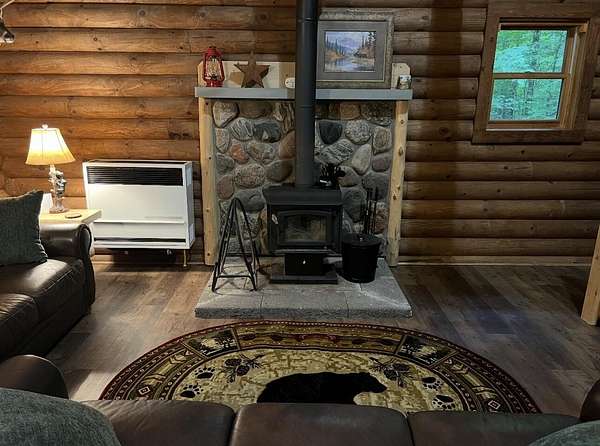 Discover the perfect blend of rustic charm and modern off-grid living with this log cabin retreat situated on 20 high-and-dry, surveyed acres just north of Newberry. This well-maintained cabin is offering comfort, character, and privacy. Inside, the main floor features 1 bedroom, a bathroom, kitchen, and living room highlighted by stunning cathedral ceilings. A half-loft currently serves as a second bedroom, adding flexible space for guests or storage. The cabin is equipped with propane appliances and a wood fireplace, creating a warm and inviting atmosphere. This property is fully set up for off-grid living with NEWLY installed wiring, solar panels, batteries, inverter, and a generator for power & 2 wall heaters for additional heat sources.
