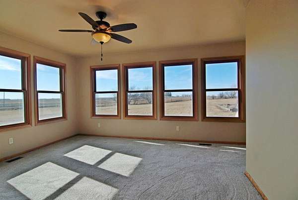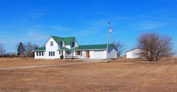 Modern Farmhouse has been almost Completly Remodeled. Two New Additions in 2016 have transformed this acreage into a Beaufitul and Functional Home. Highlights include a Huge Custom Hickory Kitchen by Bertch Cabinets. Large enough to add an Island or Eat In Table. The East Wing Addition features a Main Floor Primary Ensuite, Large Walk~In closet, Bertch Cabinetry in Bathroom with loads of storage. The West Wing Addition is a Four Season Room with Wrap Around Windows and nearby Main Floor Laundry. Use it to enjoy the Evening Sunsets, Play Room or Even a 5th Bedroom. Next to the Primary Bedroom you will find a Poured Concrete Storm Shelter. Upstairs you will find 3 more Bedrooms, two of which are very Good Sized. The Enclosed Front Porch is graced in Knotty Pine and Wood Blinds making it a perfect Mudroom for your coats and boots. New Carpet, Fresh Paint, Newer Appliances, Windows, Breaker Boxes, Water Softener and Furnace/Central Air. The Attached Garage is Insulated and Heated. The Detached Garage is a Generous 24 x 30 feet. This Super Clean Acreage is ready for you to set~up for a few Cows, Horses, Goats, Chickens and a Large Garden. Extra Concrete Pad next to Water Hydrant is Ideal to Build a Garden or Livestock Shed on. Three Plus Acres to do whatever your heart desires. Listing Agent is related to the Seller. Check it out now!! Good Acreages are Hard to Find..