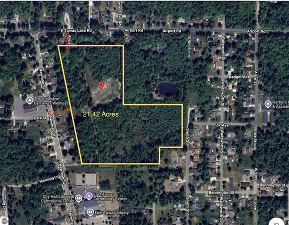From US 23 go North on Newman and follow to easement straight across from Park St. There is a tall wood fence at entry. Can also follow to E.Tawas Lake Rd., turn right onto Alicia St. which ends at the North end of property.