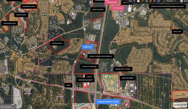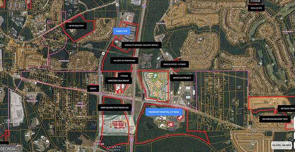 Prime 5.93 acre pad-ready commercial parcel located WITHIN the City limits of Newnan along the heavily traveled Newnan Crossing Bypass (SR 34), offering exceptional visibility and access. Zoned MXD, this pad-ready vacant land is approved for retail, medical office, or restaurant use and features an approved site plan for two one-story buildings totaling approximately 43,520 SF with 232 parking spaces, significantly reducing entitlement risk and accelerating development timelines. The property offers approximately 755 feet of road frontage, off-site stormwater detention, and access to public water, sewer, underground utilities, and high-speed internet. Access is well designed with a north-south curb cut including a median break, along with two additional right-in/right-out access points serving both directions of traffic. Strategically positioned directly in front of the 320-unit Springs at Newnan apartment community and adjacent to the 202-unit Ashlynn Ridge 55+ community, the site benefits from strong surrounding rooftops and ongoing growth, with over 2,000 residential units and 50+ projects currently under construction or in permitting within the city limits. The property is located less than 0.8 miles from the I-85/Poplar Road interchange and within close proximity to major anchors including Piedmont Newnan Hospital (217 beds), City of Hope Cancer Treatment Center, Ashley Park lifestyle retail center, SummerGrove Golf & Tennis, White Oak Golf Club, and historic Downtown Newnan. Hartsfield-Jackson Atlanta International Airport is approximately 29 minutes away, further enhancing regional accessibility. This highly visible infill opportunity offers a rare combination of approved entitlements, dense surrounding development, and immediate access to Newnan's premier medical, retail, and residential corridors. OM available to qualified buyers.