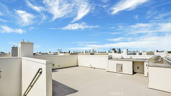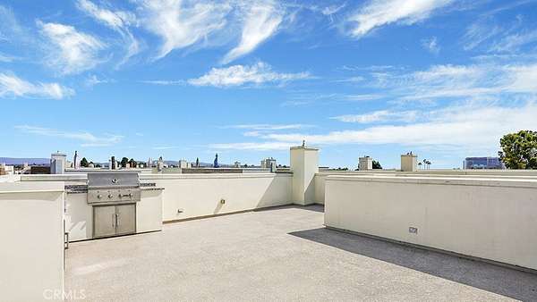 On the upper level, the primary suite provides a tranquil retreat complete with a luxurious en-suite bath, joined by two additional bedrooms and a full bathroom. The crown jewel of the home awaits above, a spacious rooftop deck equipped with a built-in outdoor kitchen, ideal for al fresco dining and enjoying panoramic sunset views.