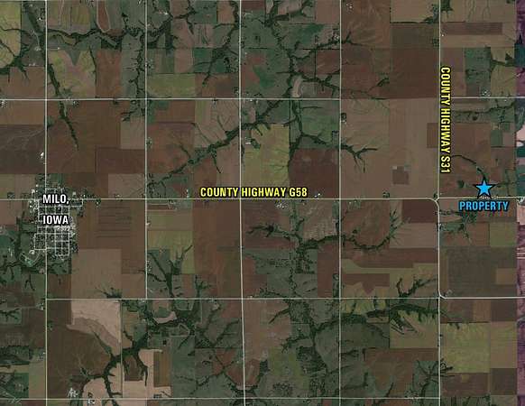 From Milo, Iowa: Travel east out of town on County Highway G58 for 3.75 miles until reaching County Highway S31. Turn left (north) on County Highway S31 and immediately turn right (east) on Nixon Street and travel for 0.4 miles. The property will be located on your left. Look for the Company Signs.
