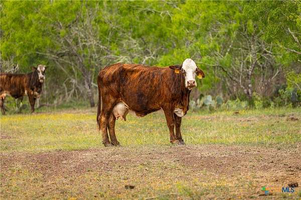 Cattle Country Ranch is 446+/- acres for sale in Gonzales County near Nixon, with frontage along FM 77. The property is set up for grazing with open pasture, native grasses, and a layout suited for cattle operations. The ranch features flat to gently rolling terrain with a mix of open pasture and native grasses supporting livestock use. The layout allows for efficient movement of cattle and day-to-day ranch operations. The property carries an agricultural exemption and is currently utilized for grazing. The perimeter is low fenced with barbed wire, and a set of working cattle pens is in place. The ranch is supported by two livestock ponds and a wet-weather creek or draw that runs the length of the property, providing natural drainage and seasonal water flow. A private water well completed in the Queen City Aquifer supplies water for livestock use. Access is provided via FM 77 with internal ranch roads allowing coverage throughout the property. Entry is through a manual gate. Cattle Country Ranch offers a larger acreage tract with established grazing use, paved access, and a layout suited for continued cattle operations. The surrounding area supports long-term agricultural use, making this a straightforward working ranch.