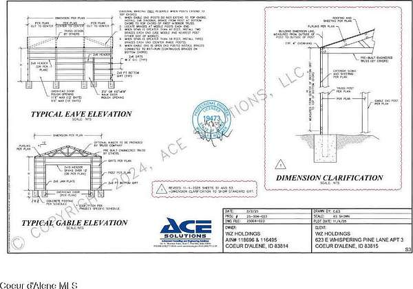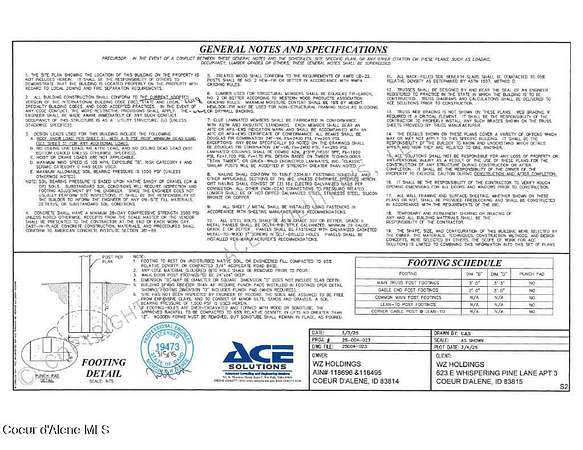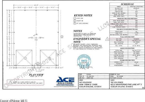 TO BE BUILT... 40'x50' shop in a great location just minutes from downtown Cda. 16' walls and 14'x14' foot doors so you can easily pull in those large boats or RV's and keep mother nature off of them. Full 200 amp panel with interior and exterior outlets plus a 220v RV/welder plug. 4 Hi-bay LED lighting fixtures to brighten up the work area. Fiber reinforced concrete floor for heavy loads. Roof will be sheeted with 15/32 OSB for shear and snow load. 29Ga metal all around on the exterior. Finish off the interior to suit your needs and stop paying for expensive storage. Build equity and protect your toys.