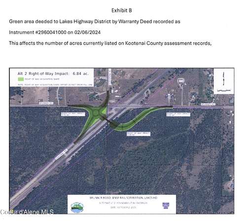 Hwy 95 N West at Brunner / Bunco / Silverwood interchange. Go west across railroad tracks. Property starts at SW corner of Brunner Rd and Diagonal Rd.
