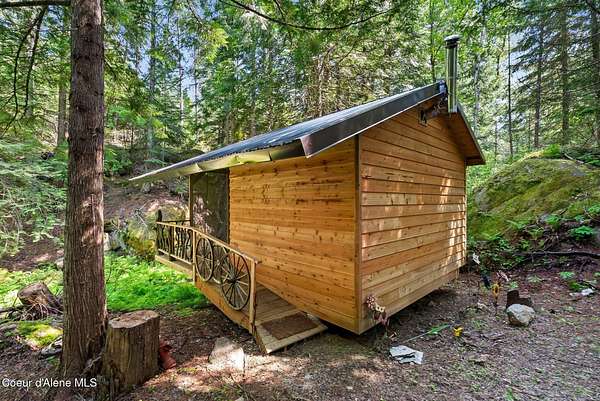 Est $1,957/moTucked away on 20 acres of lush forestland near Sandpoint, this off-grid retreat is the ultimate escape into nature. A year-round creek winds past moss-covered boulders and a charming cedar-sided cabin with a wood stove and screened-in porch. Surrounded by towering trees and abundant wildlife, this property offers complete privacy and year-round access to hiking and relaxation. No CCRs or HOA-ideal for a personal getaway, hunting cabin, or off-grid living with room to expand. Peace, beauty, and freedom in North Idaho.