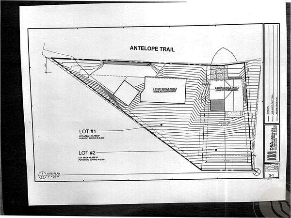 Est $806/moBeautiful large tree and rock formation covered lot overlooking Alkali Creek. It could be split into two lots. Sewer, Electric, Water to lot. The architect comments "...two home sites at Antelope Trail. There is plenty of room on the site to get two single-family homes. One would be zoned R 9,600 and the other R 8,000.