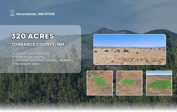 Discover an extraordinary opportunity to own a sprawling 320-acre parcel of pristine high-desert land near Mountainair, New Mexico, in scenic Torrance County. Located at the heart of New Mexico's open landscapes, this vast property offers sweeping views of open plains, distant mountain ranges, and the classic high-desert terrain that makes this region so unique. The land is ideal for ranching, recreation, outdoor adventure, off-grid living, or long-term investment. The surrounding landscape features rugged terrain, gentle slopes, and naturally occurring desert vegetation -- a mix of brush, grasslands, and wide-open vistas that attract wildlife and offer remarkable privacy. This property is far from crowded development and provides the kind of expansive freedom.