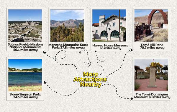 I-40 east to Moriarty exit 196, NM Hwy 41 south approximately 23.6 miles to NM Hwy 542 west approximately 9 miles to GPS coordinates 34.670599/-106.220760