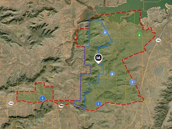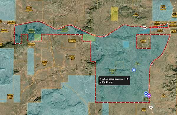 From Tucumcari, New Mexico, travel north on NM Highway 104 for approximately 31 miles to reach the ranch. The property benefits from exceptional access, with NM Highway 104 running directly through the center of the ranch and NM Highway 129 bordering the eastern boundary. Both highways are paved, state-maintained roads, providing reliable, year-round access throughout the property..
