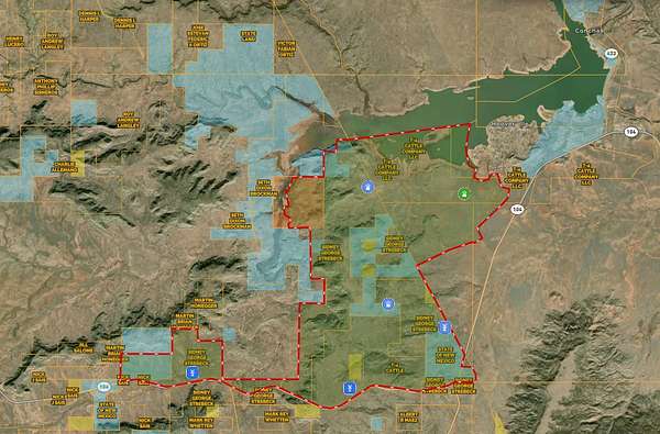 Lago Vista Ranch encompasses approximately 15,750 total acres, including ±13,442 deeded acres, 1,648 acres of State Trust lease, and 660 acres of BLM lease. The ranch includes a unique blend of land and lake frontage, with roughly 1,000 acres submerged when Conchas Lake is at full pool. During irrigation drawdowns, much of this acreage becomes exposed and provides excellent seasonal grazing for livestock.