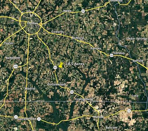 Est $881/mo12.7 Acres UNRESTRICTED located on Nobles rd just North of Cottonwood, AL. (9 miles from Dothan, AL) 257 ft of Paved rd frontage with Pond, Creek, Water, Power, and High Speed Internet. Open in the back. Wooded in the middle. Open in the front. Stream in the middle of the property with 2 stream crossings. Wooded adjacent to the stream crossings. Multiple Beautiful Homesites and Unrestricted ! Drawings, pics and markings are estimate only. Recently Surveyed, Corners are marked. Seller has AL Real Estate License. 3 miles to Dollar General. 9 miles to Dothan, AL. 7 miles to Florida. 70 Miles to the Gulf of America. Check out the pics!