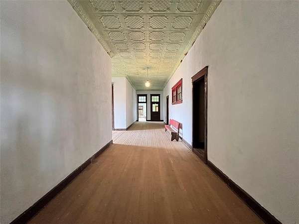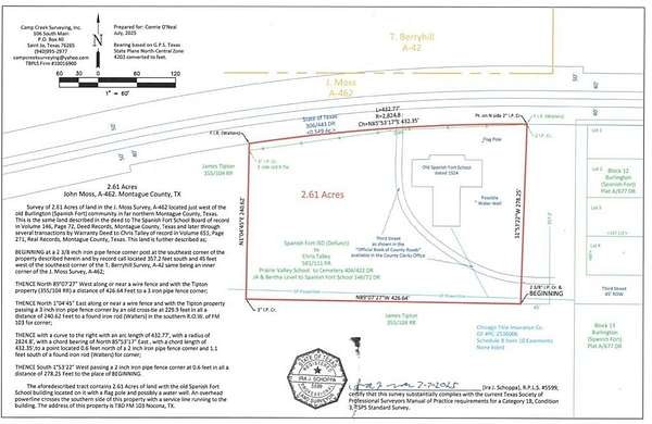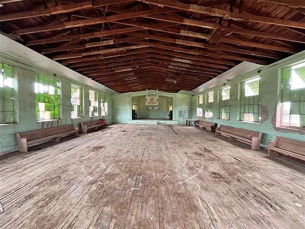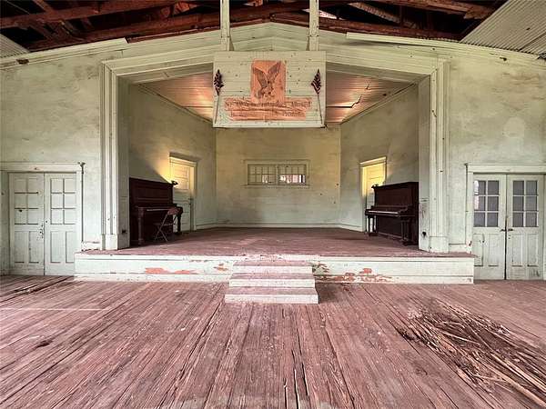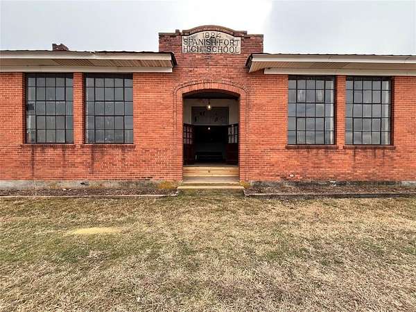 Designed by renowned Texas Architecture firm Voelcker & Dixon, the 7,000 square foot 1924 Spanish Fort High School is a testament to building practices that have stood the test of time. From its double brick walls, inch-thick plaster, vertical grain heartwood pine floors, this building is solid and ready for its next life. The fully fenced 2.6 acre property is nestled in the North Texas Hill Country and within thirty minutes Saint Jo, Nocona, three different wineries, and Red River Station concert venue. Several events throughout the year bring in thousands of tourists from across the region. With six classrooms ranging from 400-500 square feet and 2, 400 square foot auditorium and stage, this would make a great concert venue, wedding venue, boutique hotel or an additional winery as the property lies within the Texoma American Viticulture Area and soil samples have already been analyzed by Texas A&M. Underground 200 amp electric has been added with three 20 amp circuits and a small room and bathroom make it possible to stay overnight. Water is currently supplied by rain water catchment and high speed internet is active at the building. There is a well and septic but both systems should be considered in need of replacement. A copy of the original blueprints is available and will convey with the sale. Listing broker is the owner of the property.