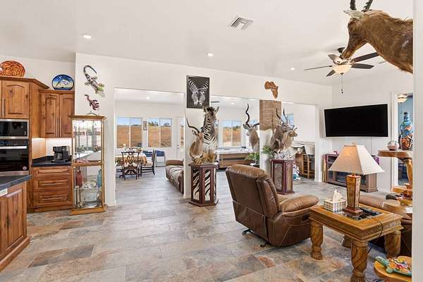 This Santa Fe gem, fully furnished and located in the picturesque Patagonia Lake Ranch Estates, is now available! Boasting stunning mountain views across more than 11 acres, you will find an abundance of firewood in your private arroyo, ideal for horseback riding, dog walking, and ATV adventures. Designed with 100% handicap accessibility, the property does not compromise on designer finishes, featuring slate-like flooring, vessel sinks, and exceptional craftsmanship. The strategic placement of each window and door, from the front sunroom to the rear pet suite equipped with Meshtec screen protection for your cherished pets, is noteworthy. Additionally, there is an oversized garage to accommodate your beloved truck! The indoor hot tub offers a perfect setting for enjoying Arizona sunsets! Located just minutes from the lake with year-round recreational activities, this property provides convenient access to Patagonia, Sonoita, and Nogales. It is a must-see!