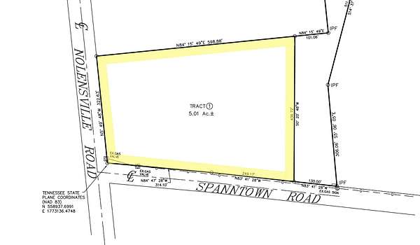 Amazing *5 acre* level lot perked for five bedrooms. This property is zoned TCA-1 which can go more than just residential. See media for permitted uses ranging from Agricultural Nurseries to Religious Institutions, Educational Facilities, etc. Easy access, corner of Nolensville Rd and Spanntown Rd. Great location - Minutes to hop on I-840 & convenient to Nolensville, Franklin & Murfreesboro. Approved and recorded soil map also in media. Gas/Water/Telephone is available on property. Electric across the street. Don't miss this opportunity in coveted Williamson County! Text agent Stevi Queen 615-692-2216 for any questions. Seller will also consider sale of tracts 2 and 3 - all together totaling 27 acres. Agent related to seller.