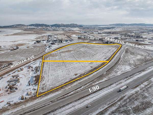 16.82 acres of development land located at Interstate 90 Exit 52 in Black Hawk, offering interstate visibility and direct access from Peaceful Pines Rd. The property features relatively flat terrain supporting a range of commercial, industrial, residential, or mixed-use development opportunities. Utilities including water, electric, and natural gas run along Norman Ave, and the property is located in Meade County with no zoning, allowing flexible development. The site sits just south of the planned Highlands at Norman Ranch subdivision, a 300+ acre master-planned housing community currently under development. The property is offered as the entire 26.13-acre site for $2,700,000, or as two parcels: Parcel 20.05.433 (16.82 acres) offered at $1,800,000 and Parcel 20.05.341 (9.31 acres) offered at $900,000. For additional information or to schedule a showing, contact Dan Logan at 605-593-7980 or Chris Long at 605-335-8100.
